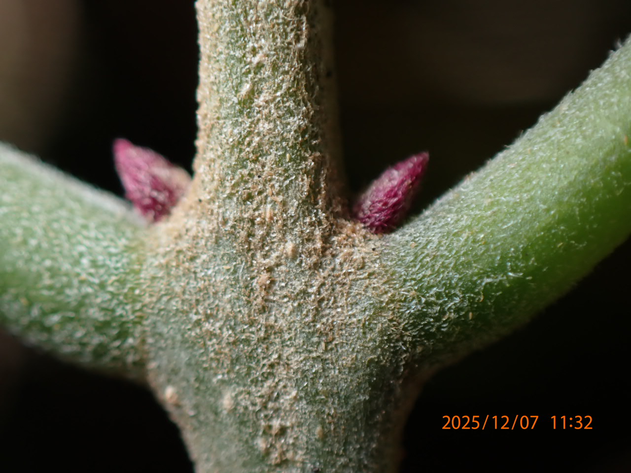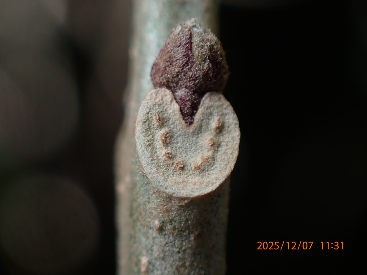 花:両性花、集散花序、花冠 白色 萼 紅紫色、ジャスミンのような甘い芳香あり