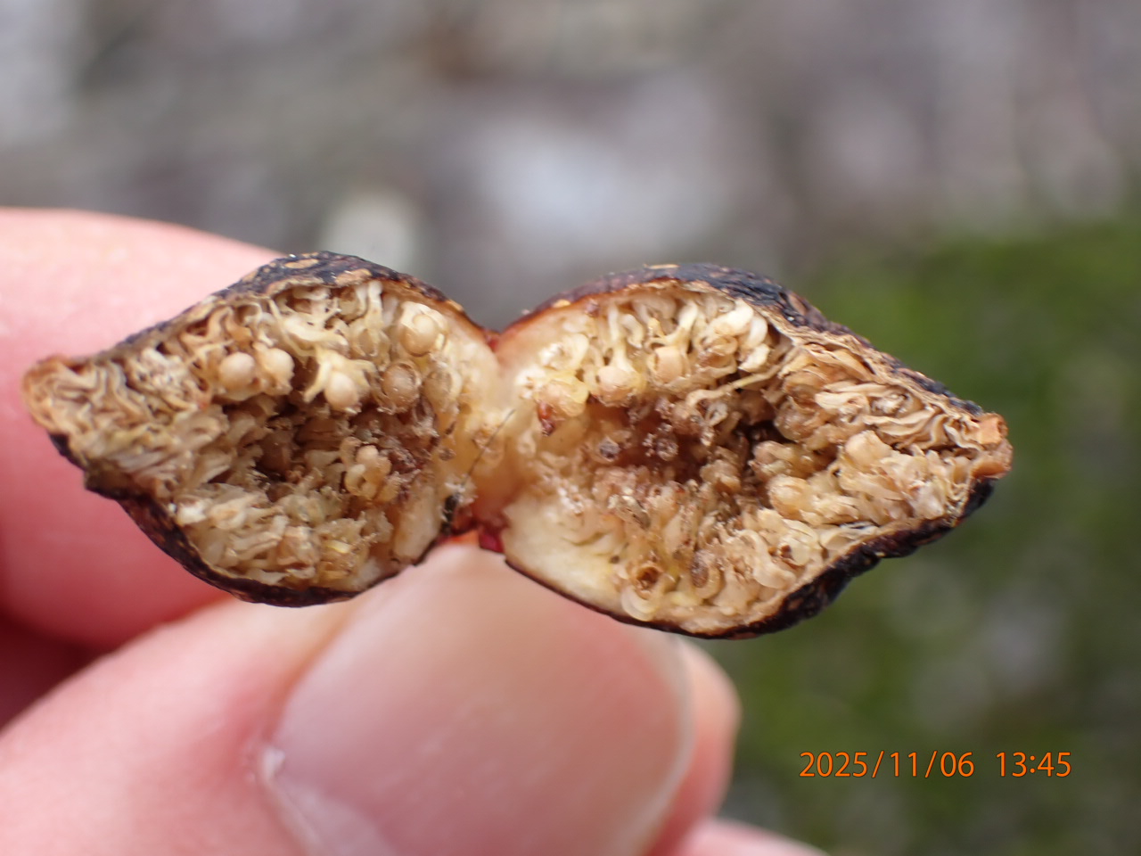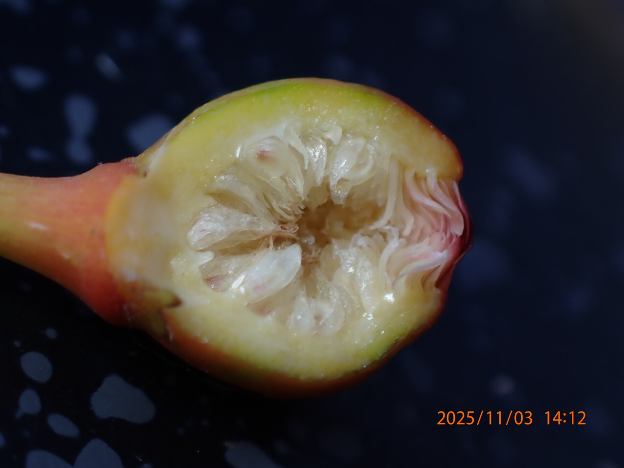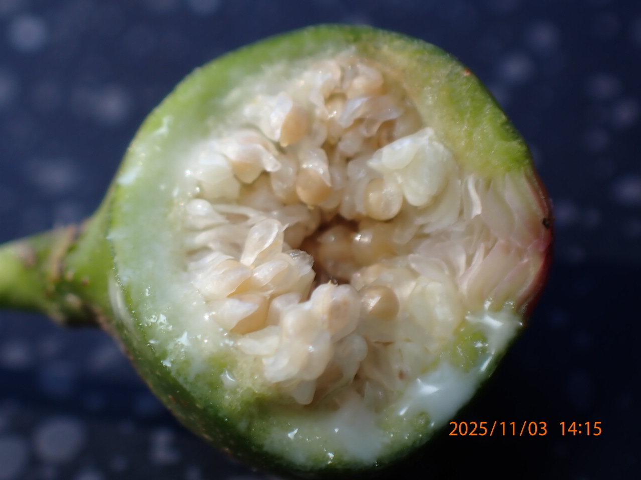 雄花嚢は、雄花とイヌビワコバチの幼虫の餌用の雌花が混在。