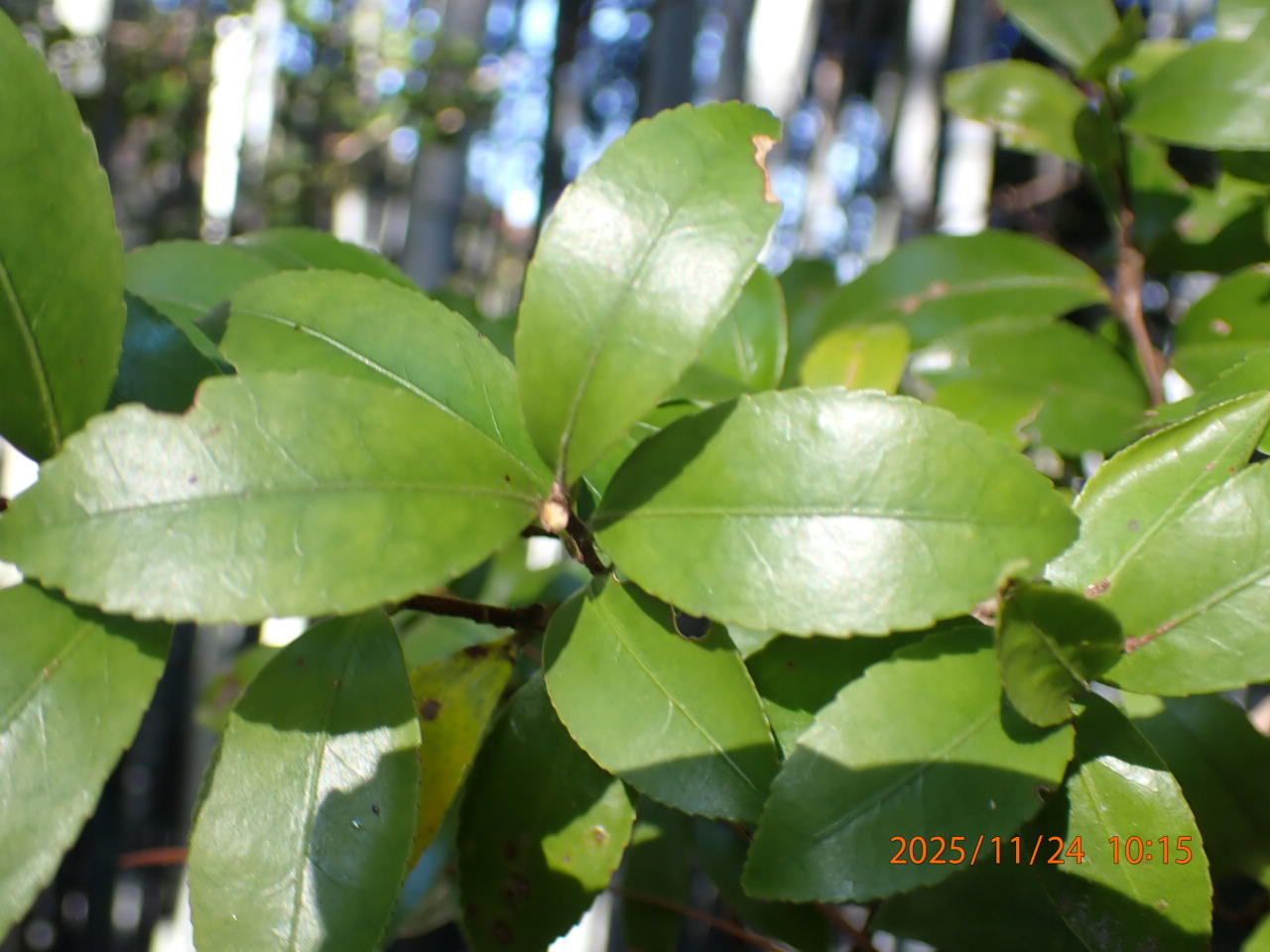 葉:互生、鈍鋸歯、裏の葉脈は網目が目立たない