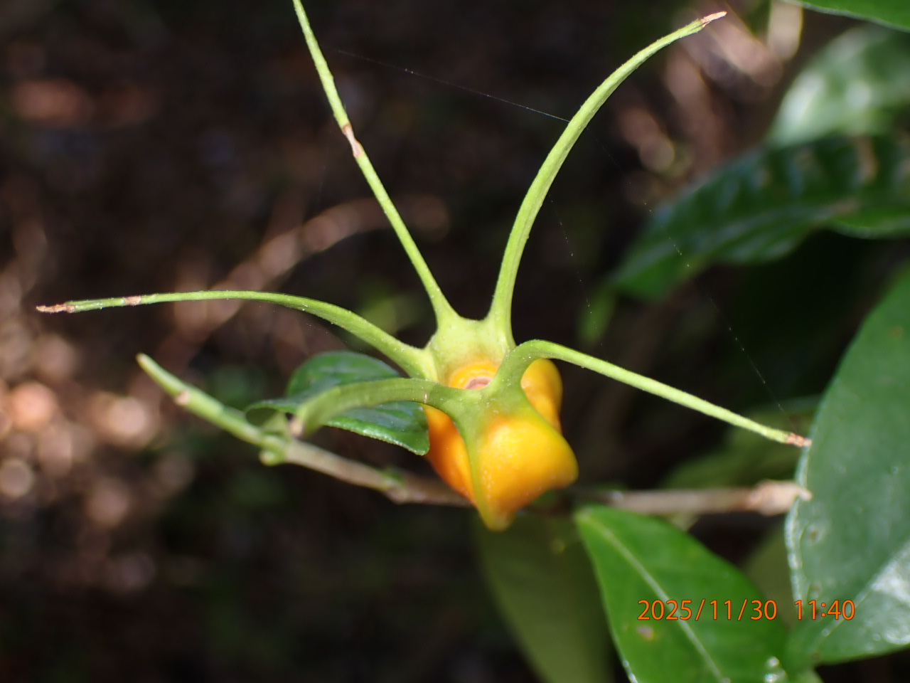 花:雌雄同株、雄花 穂状花序(尾状花序)、雌花 雄花穂の基部につく