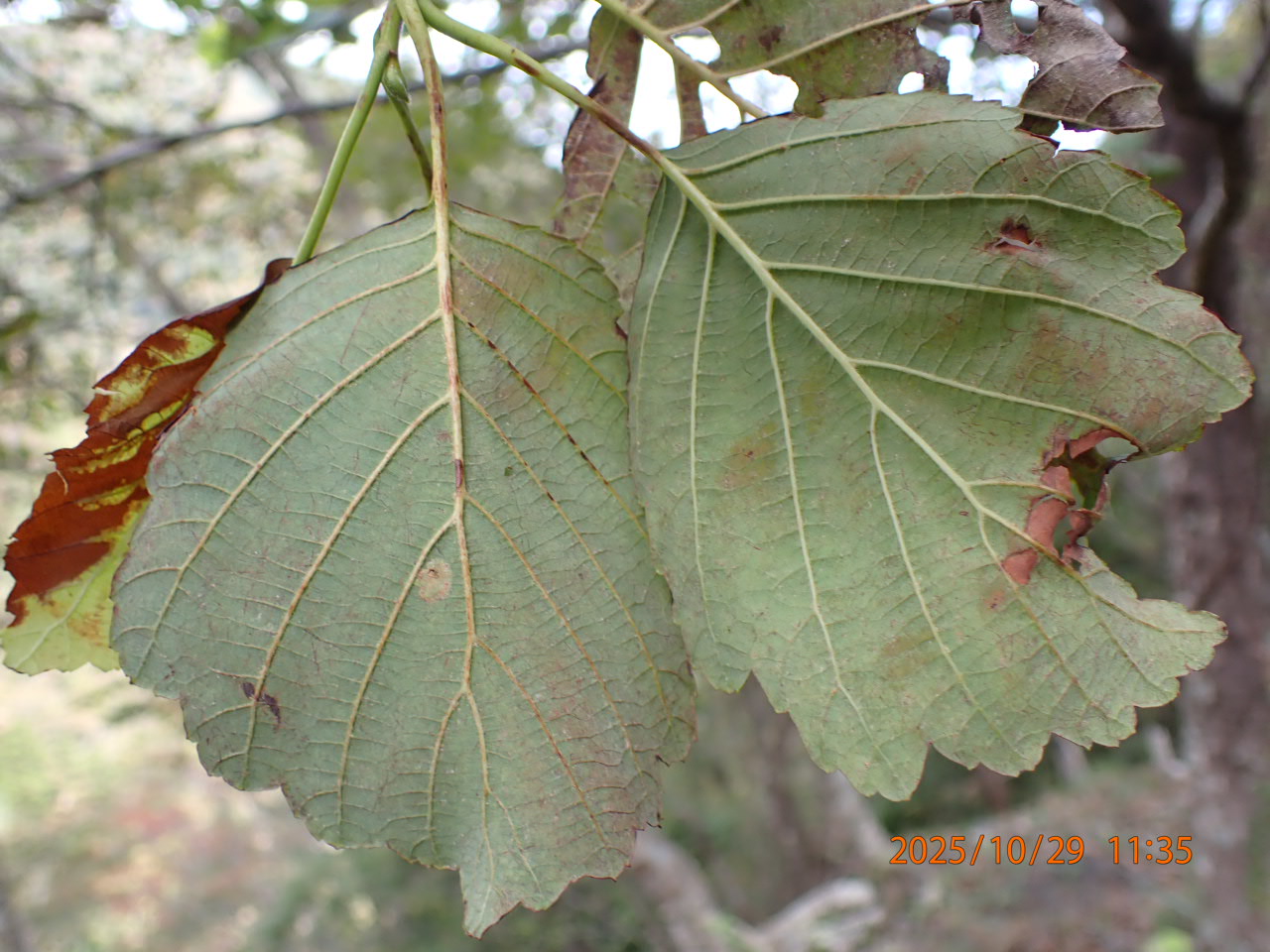 春出る葉は秋には落葉し、夏~秋に出る葉も翌年の春には新しい葉が出ると落葉し、1枚の葉が1年間着いていない。春から夏の葉は大きく、秋から冬の葉は小さい。