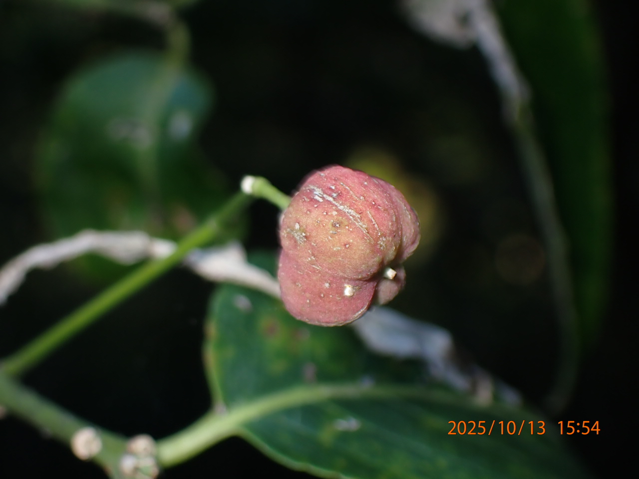 果実:蒴果、淡紅色で4裂して赤い仮種皮の種子を4個出す